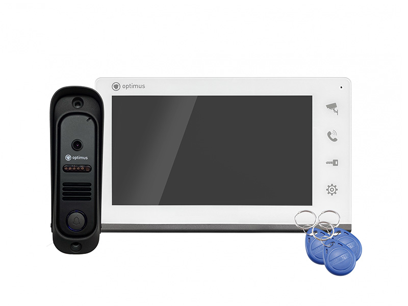 Цветной монитор оборудован 7˝ TFT LCD дисплеем, с разрешением 800х480 пикселей. Видеодомофон поддерживает стандарты видео PAL/NTSC. Продолжительность беспрерывной беседы достигает 2 минут. Вызывная панель при этом может располагаться от видеодомофона на расстоянии до 100м. К домофону возможно подключить 2 вызывные панели, либо 1 вызывная панель Optimus Leader + 1 аналоговая камера. С монитором совместимы 4-проводные вызывные видеопанели Optimus Leader. Устанавливается накладным способом при помощи пластины, которая идет в комплекте.
