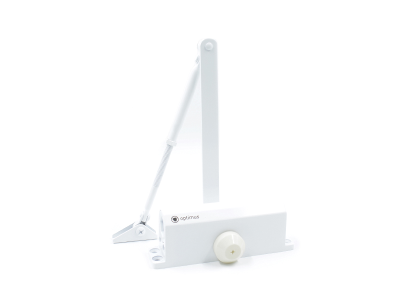 Доводчик дверной для двери весом 85 кг. Ширина дверного полотна не должна превышать 1500 мм. При необходимости доводчик можно устанавливать как на правые, так и на левые двери. Рабочая температура от -40°С до +60°С. Цвет: белый.